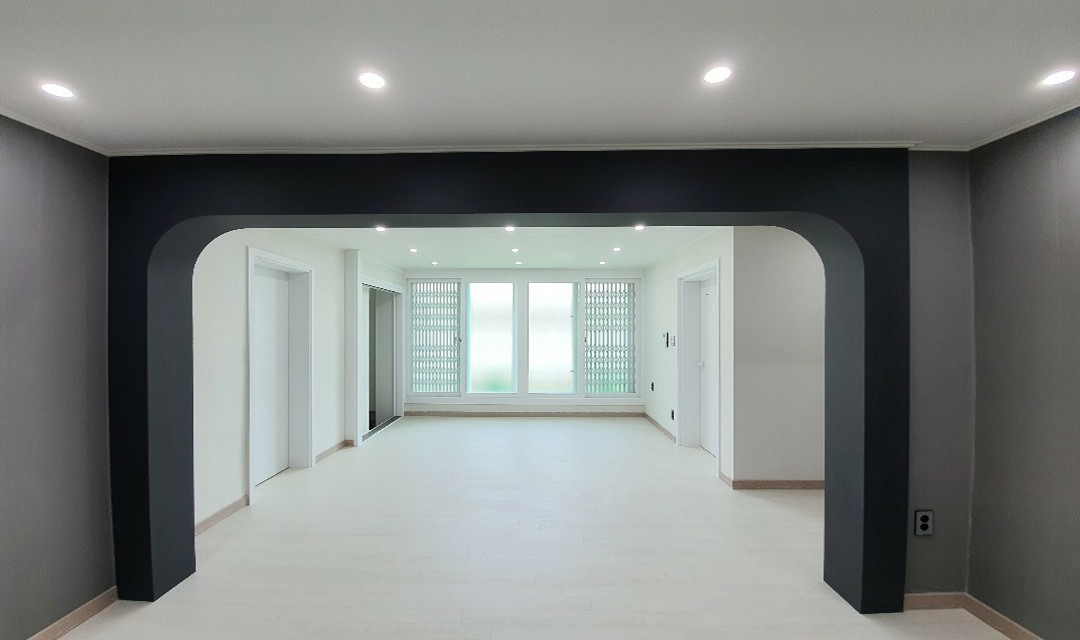 #모던 #트렌디 #깔끔한 #세련 #아치 #단열시공 #실크도배 #화이트 #그레이 #블랙 #강마루 #매립조명 #20평 #주택인테리어