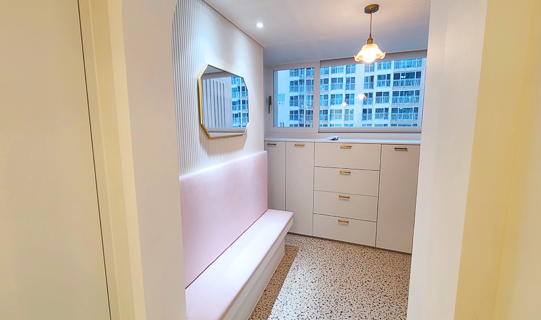 #모던 #럭셔리 #트렌디 #유니크 #중문시공 #프렌치도어 #양개도어 #타일시공 #테라조타일 #비앙코타일 #스트레이트셋 #인테리어조명 #매립조명 #간접조명 #웨인스코팅 #30평 #아파트인테리어
