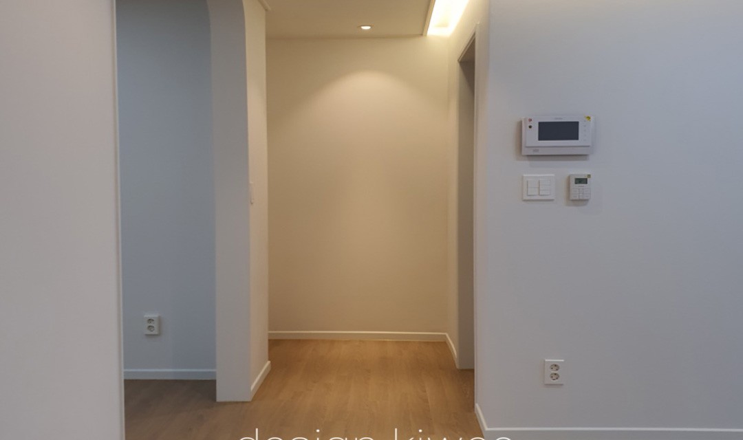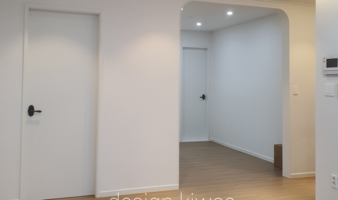 #모던 #미니멀 #따뜻한 #무몰딩 #라운드아치 #화이트 #라이트브라운 #중문 #비대칭양개형도어 #프렌치중문 #간접조명 #이건마루 #실링팬 #30평 #아파트인테리어