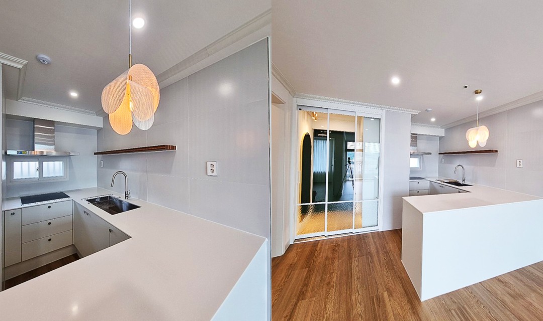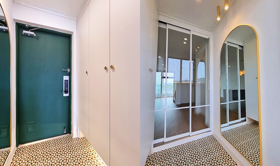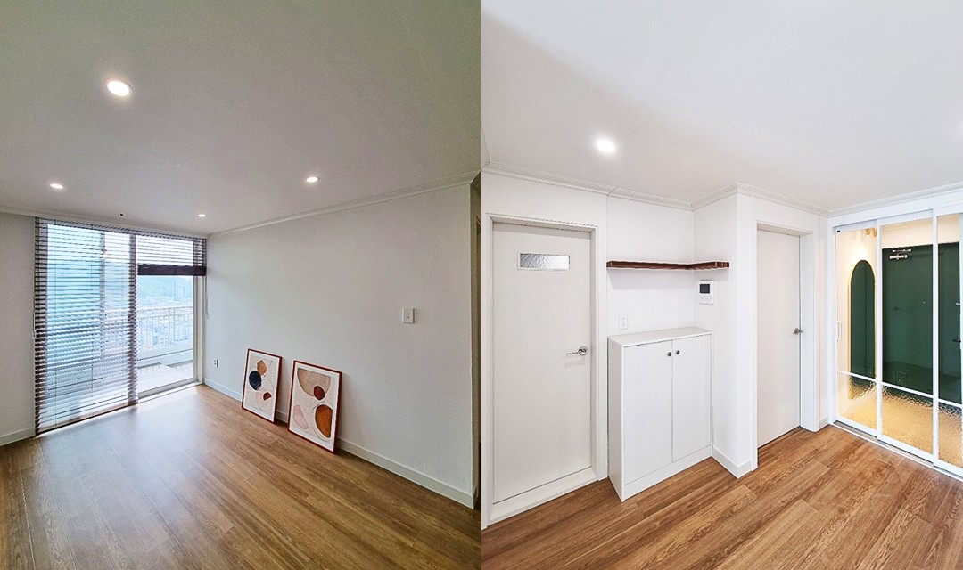 #모던 #트렌디 #레트로 #유니크 #중문시공 #슬림슬라이딩도어 #3중연동 #타일시공 #포인트타일 #필름시공 #인테리어조명 #매립조명 #간접조명 #마루시공 #10평 #아파트인테리어
