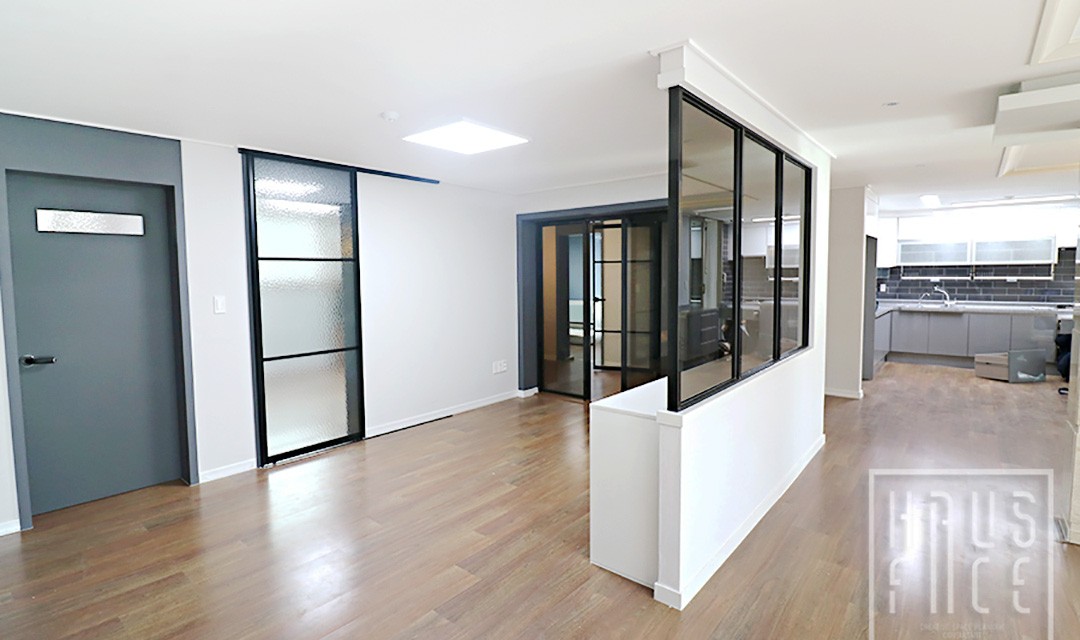 #모던 #내추럴 #미니멀 #행잉형신발장 #목공사 #우드 #화이트 #베이지 #그레이 #중문 #마루 #간접조명 #펜던트조명 #헤링본타일 #60평 #아파트인테리어