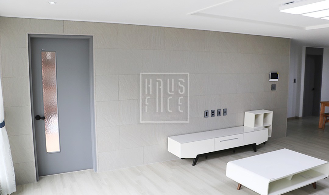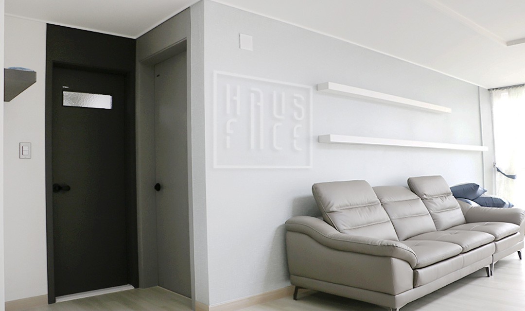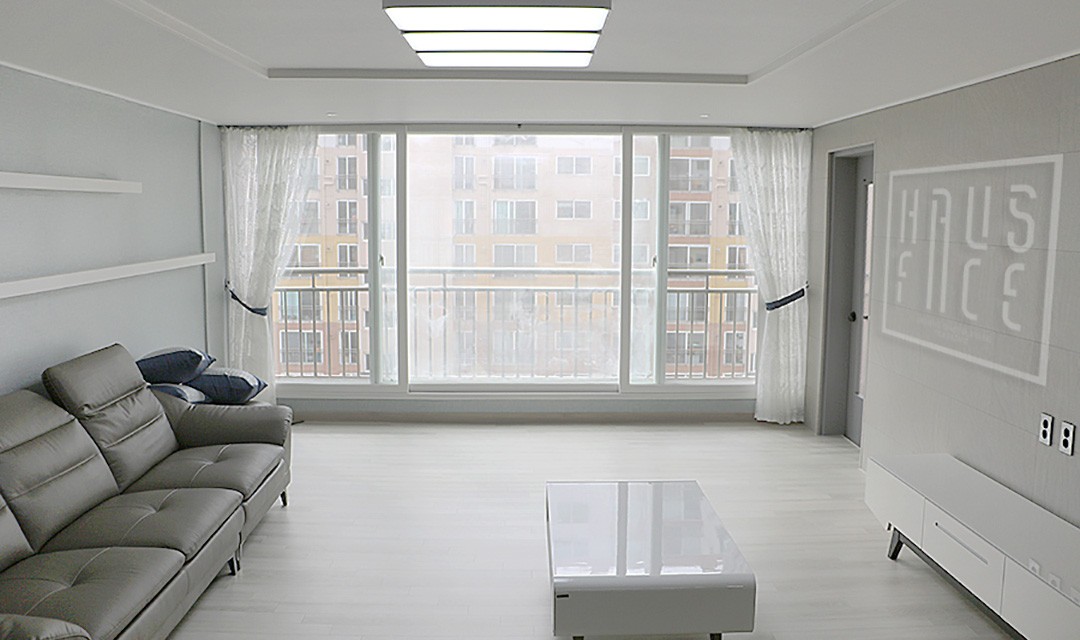 #모던 #세련된 #시크 #깔끔한 #필름시공 #화이트 #그레이 #연그레이 #중문 #3연동슬라이딩도어 #강마루 #포인트조명 #30평 #아파트인테리어